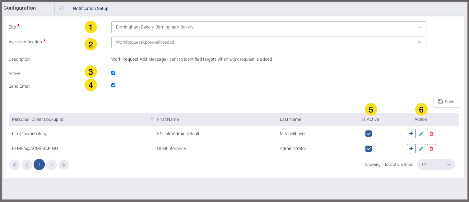 - Select from the Dropdown the WorkRequestApprovalNeeded Notification