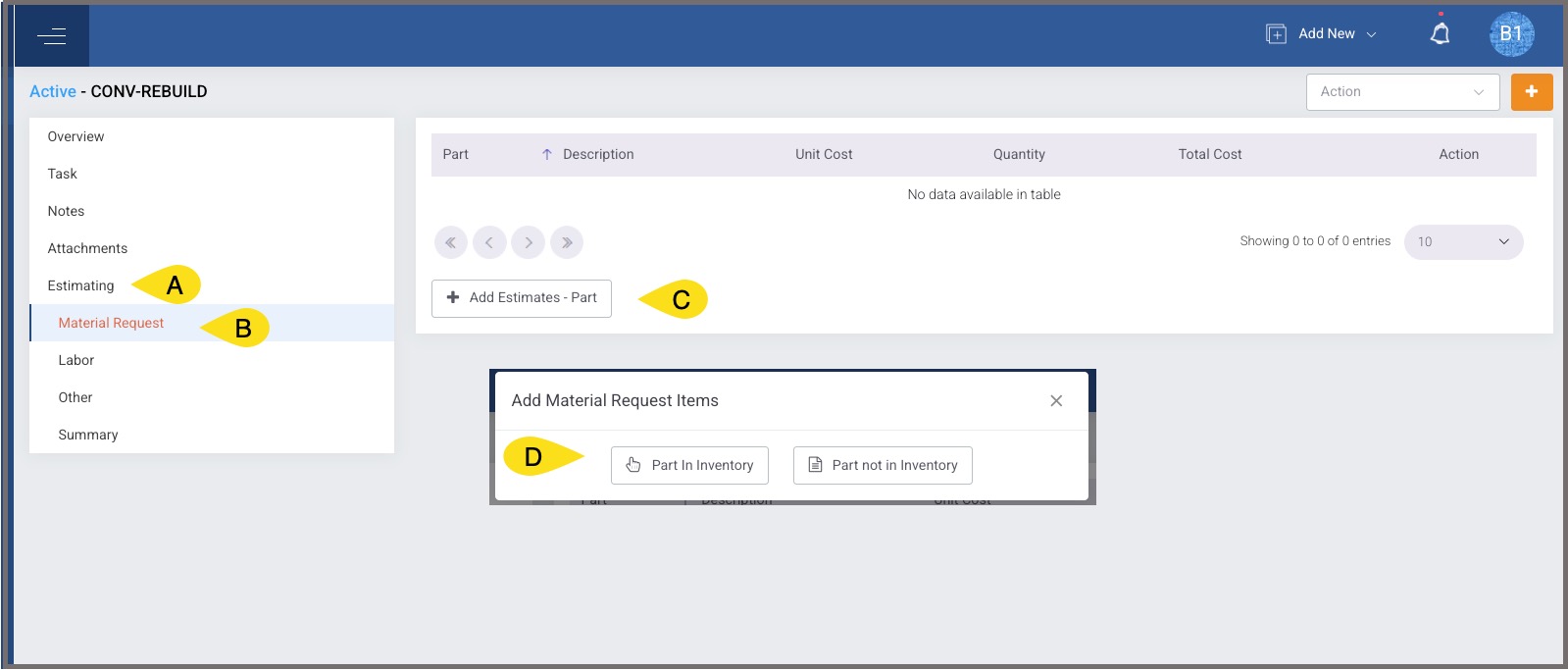 - Select Add Estimates - Part