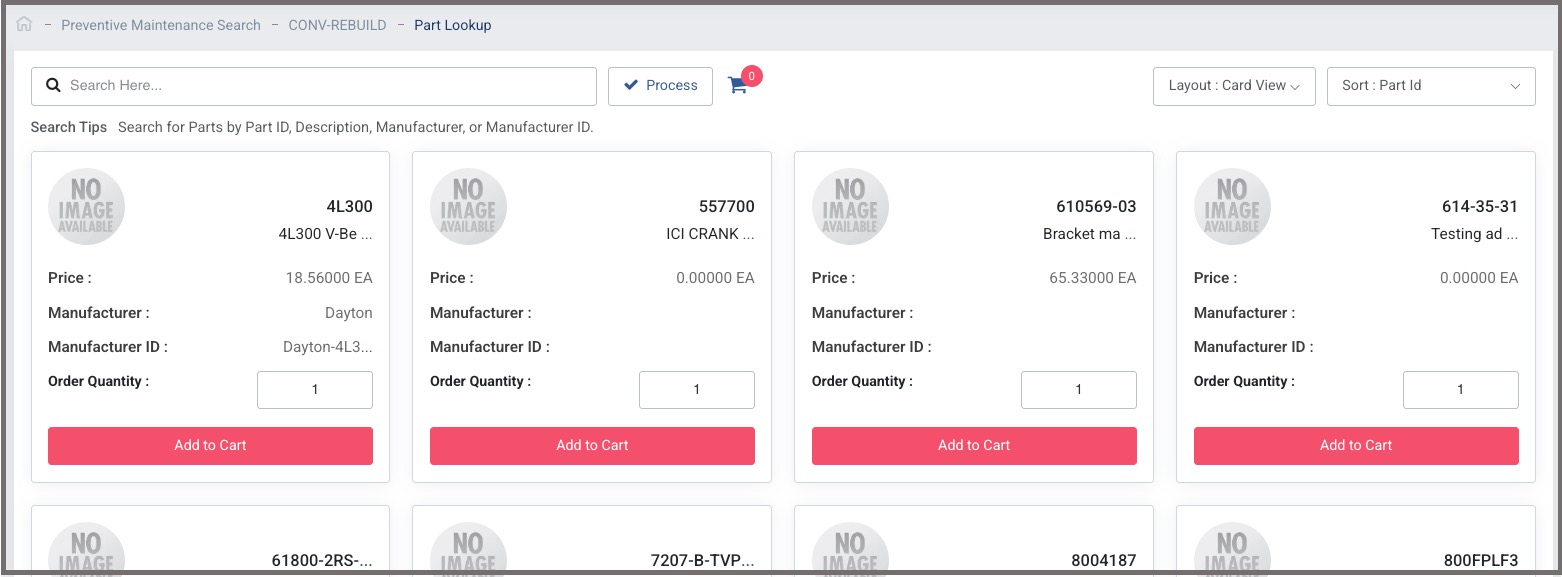 - Select the Checkbox on the left of the part to be Issued (Stock Parts Only)