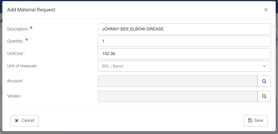 - Select Material Request
