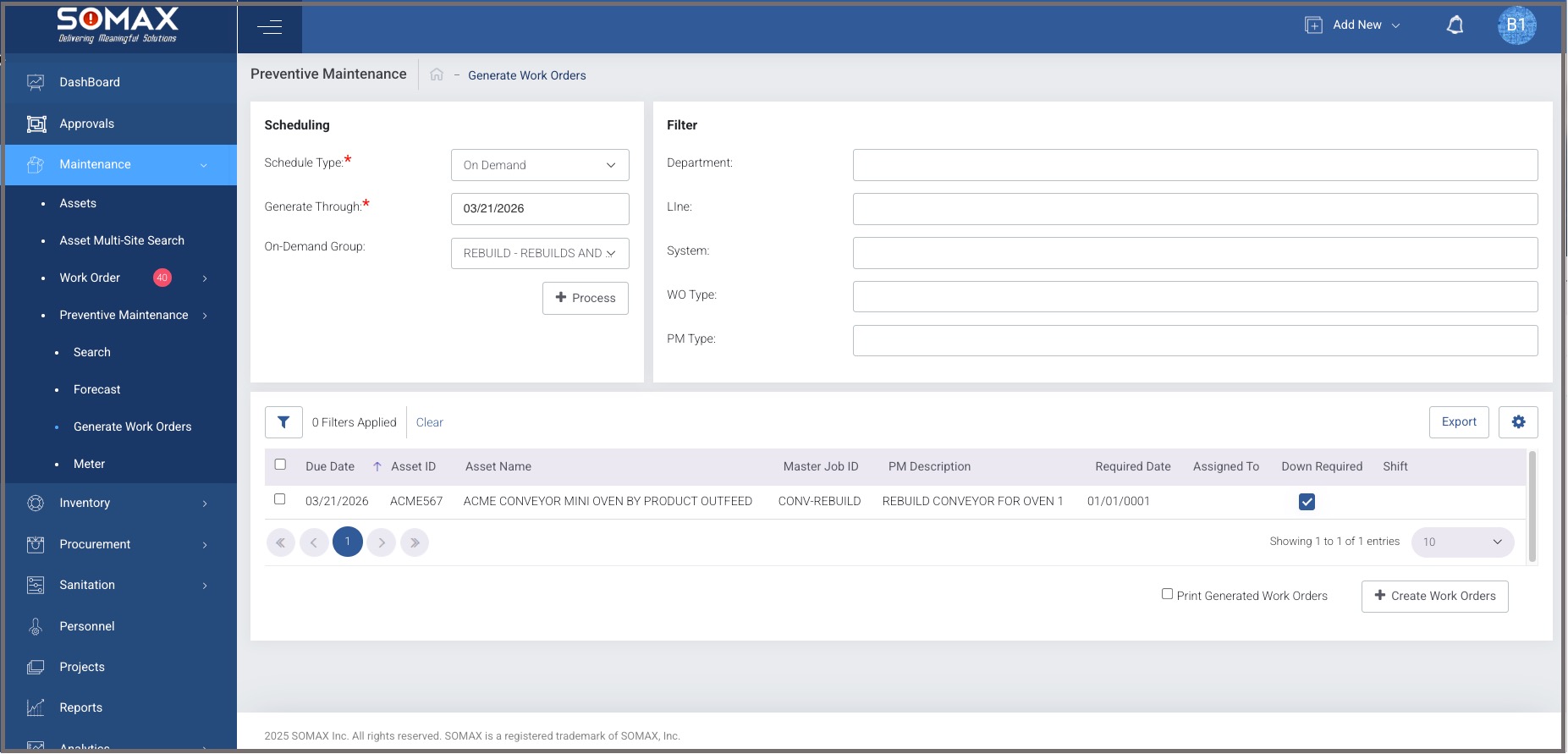 Generate the PM and create the Work Order(s)